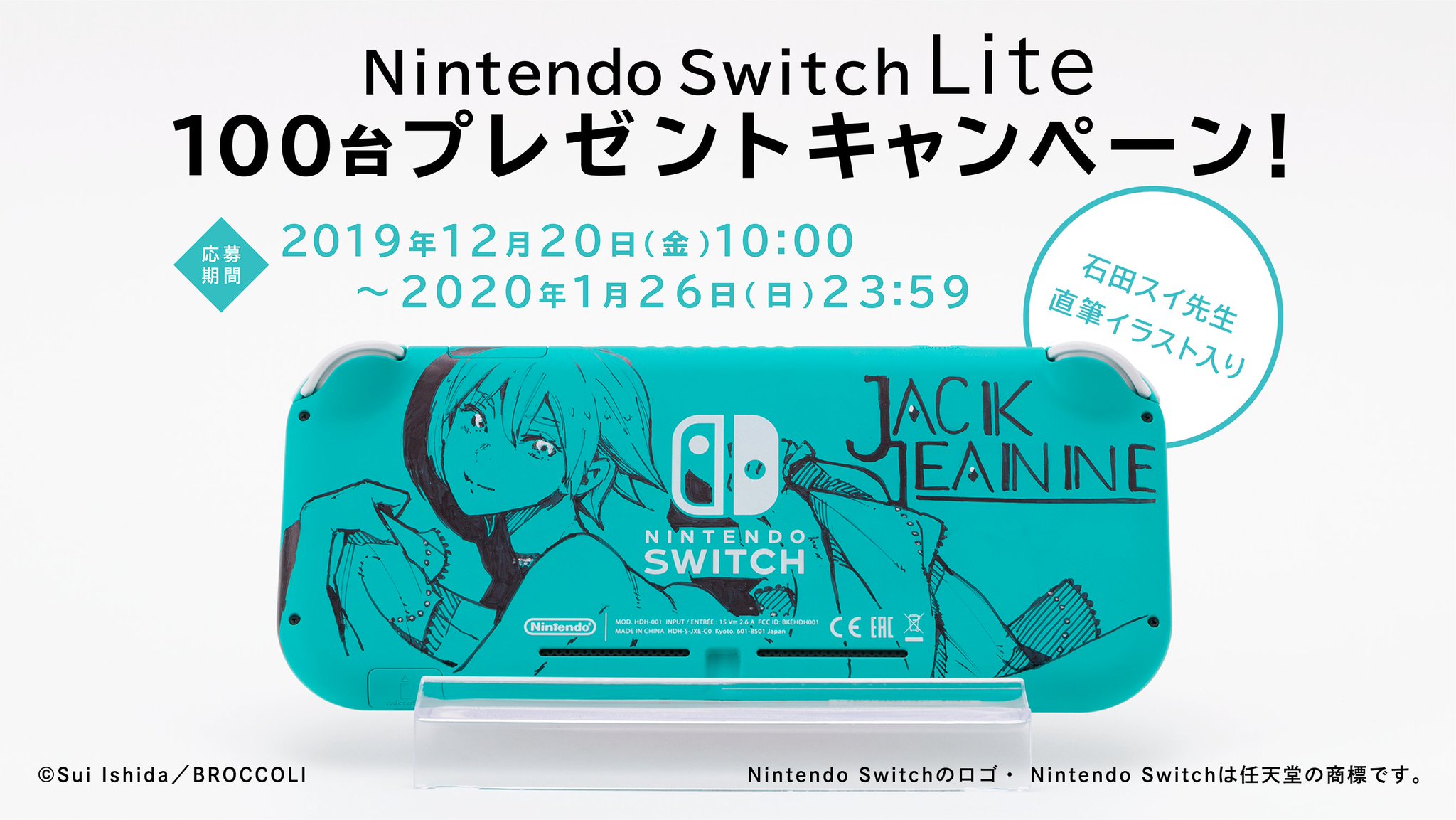Jackjeanne ジャックジャンヌ 公式 プレゼントキャンペーン 石田スイ先生の直筆イラスト入り Nintendo Switch Lite をなんと 100名様 にプレゼント まだnintendo Switch Liteを持っていない人も 既に持っている人も要チェックのキャンペーン